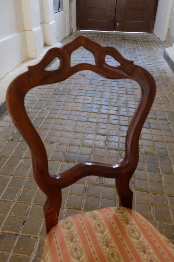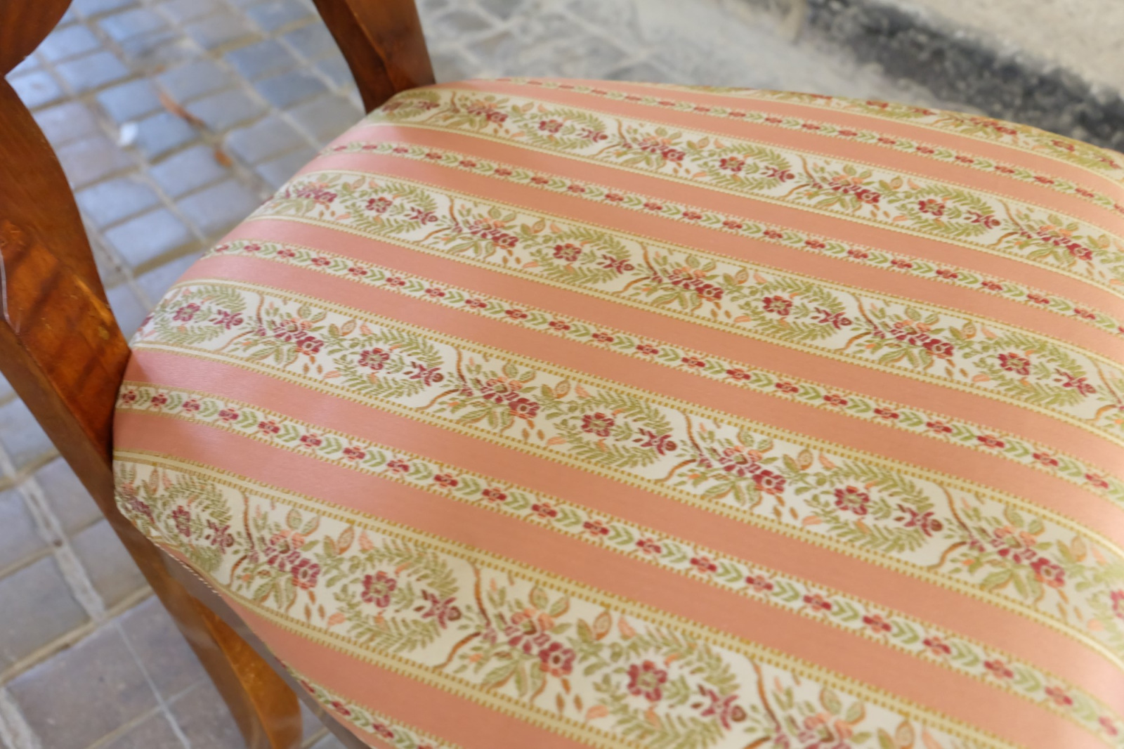 1820-1845 Biedermeier stoličky po reštaurovaní. Sú to ale staršie dámy a reštaurovani eprebehlo okolo roku 2012-2015.