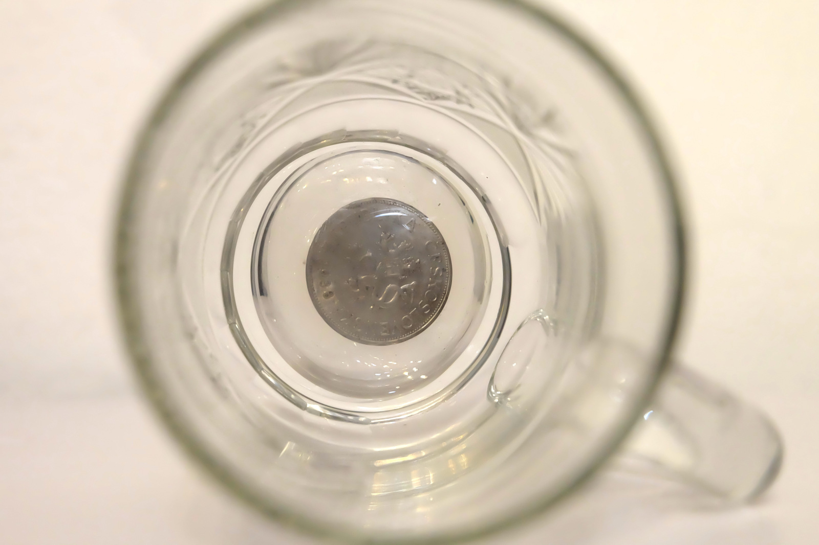 1937 Pohár z bruseného skla zo zaliatou 5 korunou