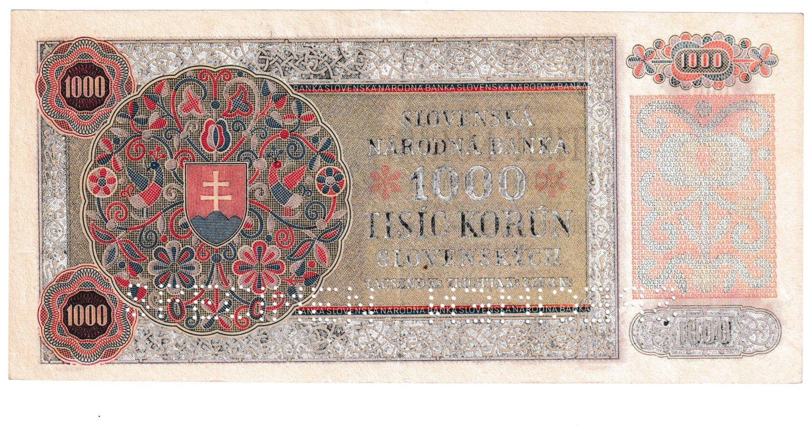 1940 1000 korun Slovenský štát séria 2o1 SPECIMEN kolok Masaryk