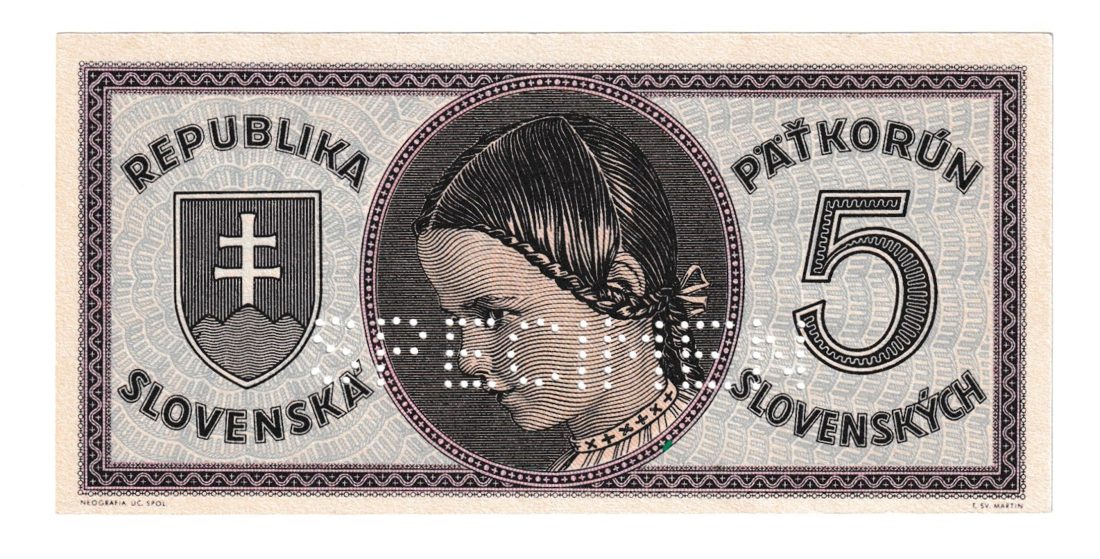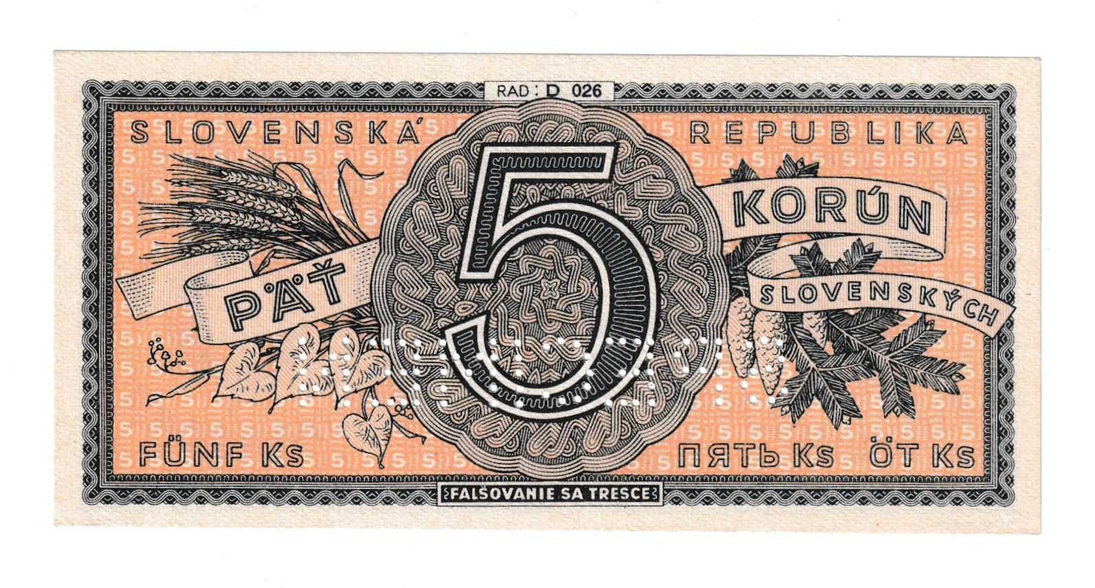 1945 5korún D Specimen AUnc