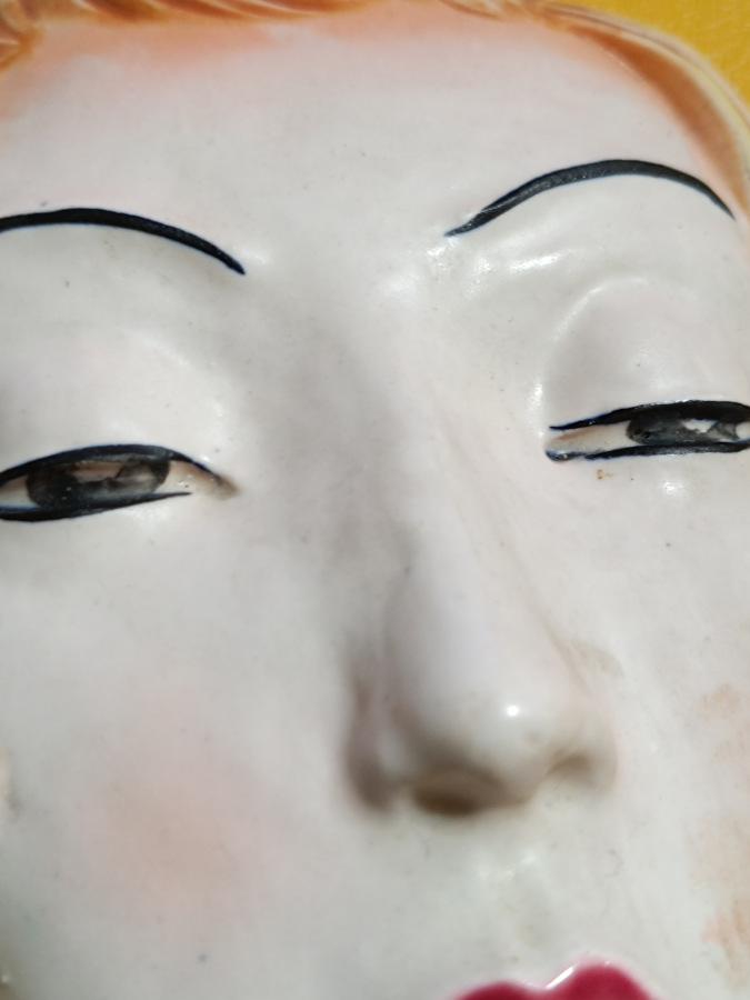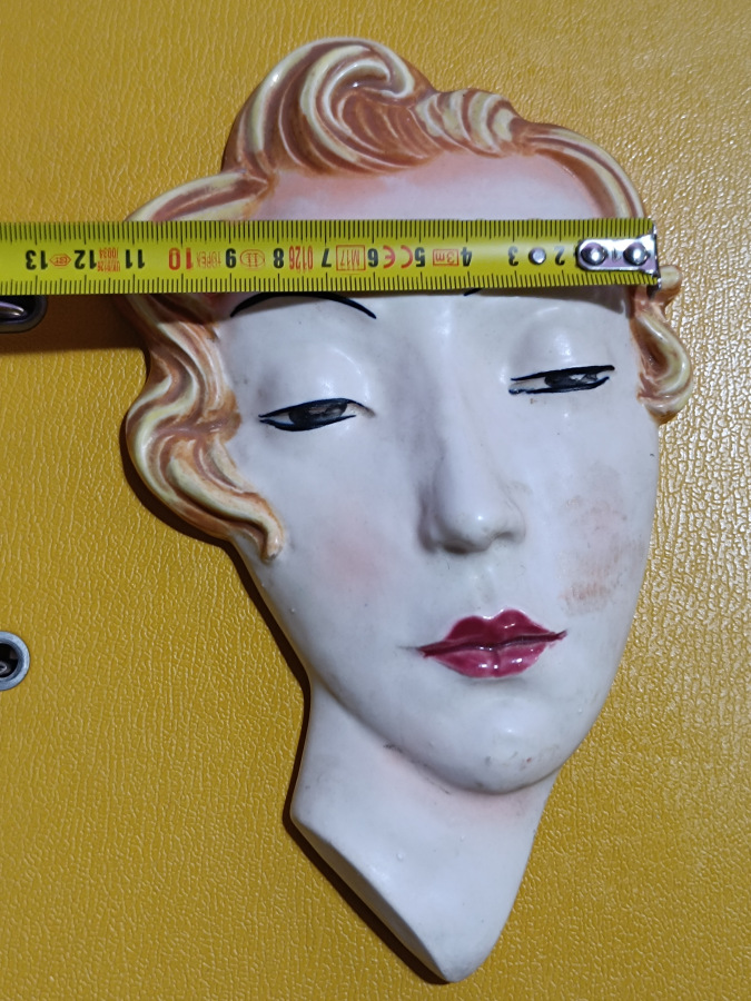Art deco plastika na stenu zobrazujúca zasnenú slečnu. Výborný stav.