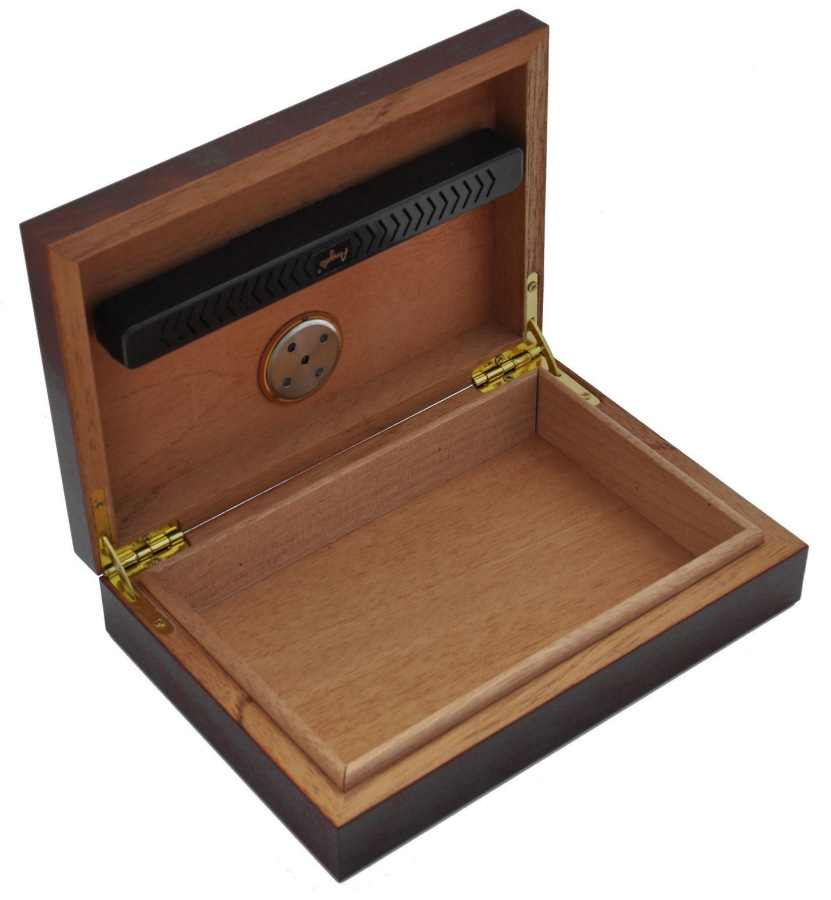 Tento humidor obsahuje regulátor vlhkosti a hydrometer.