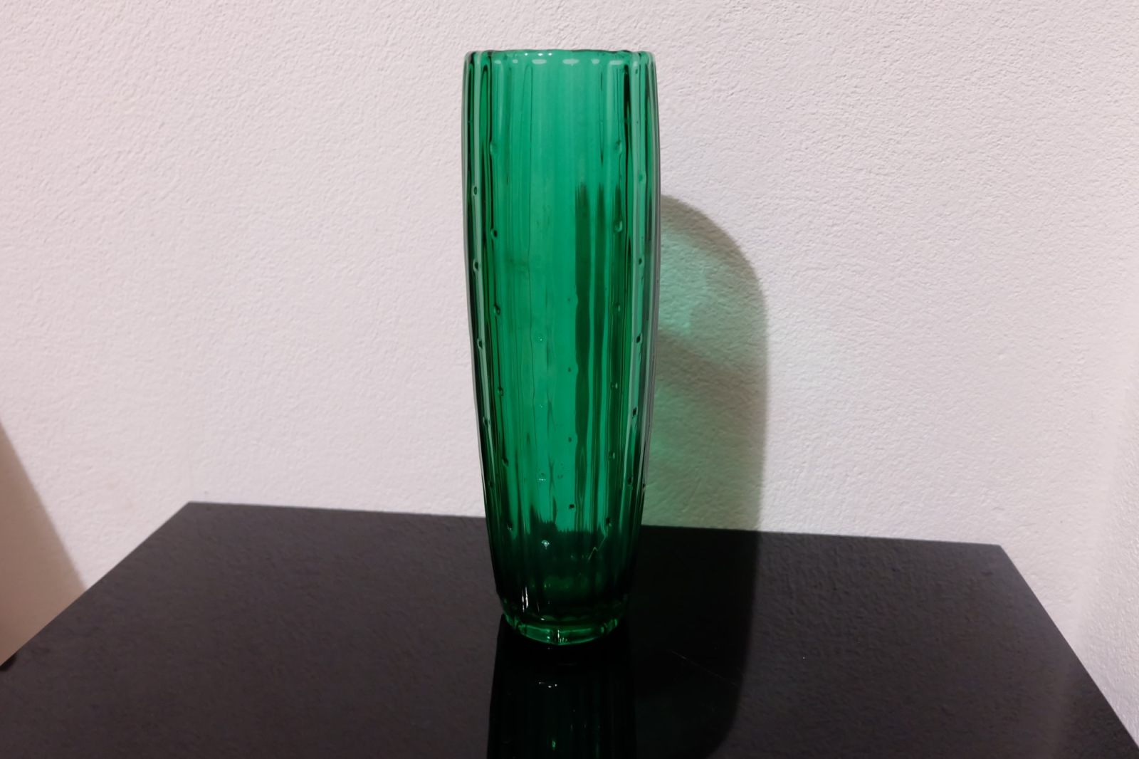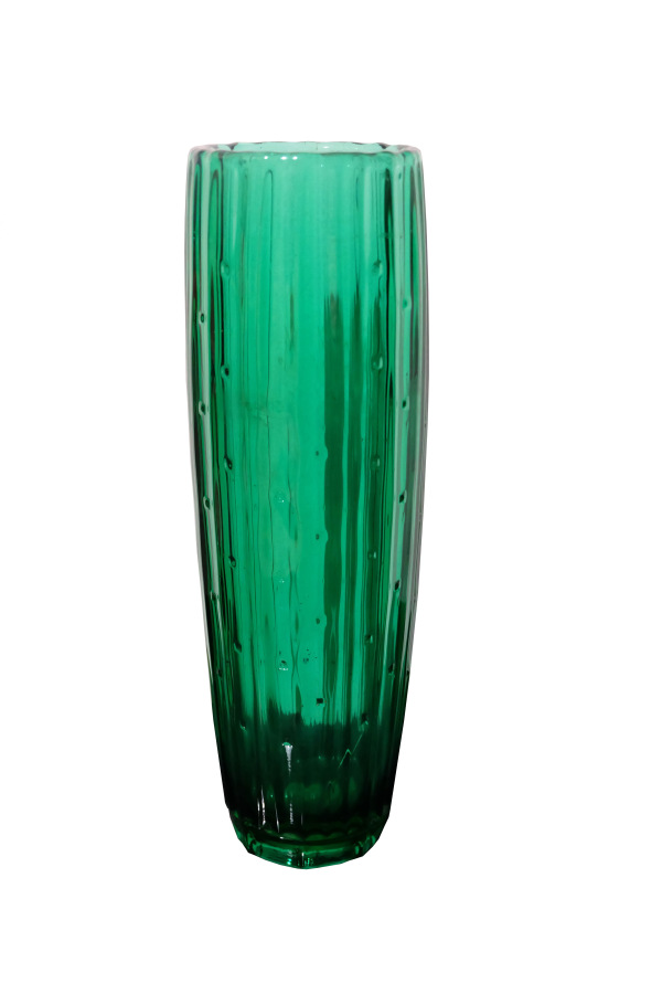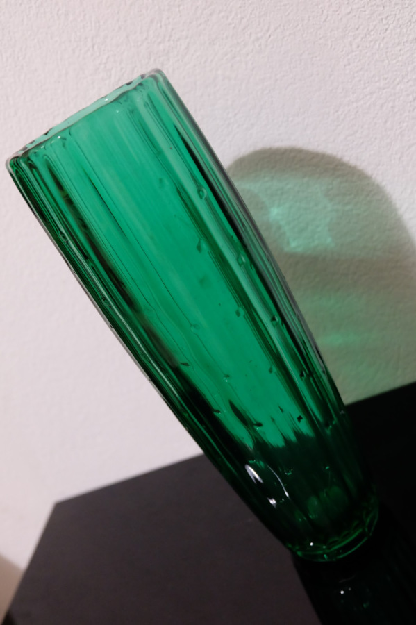 Váza zelená lisované sklo autor Rudolf Jurnikl Libochovice 1961