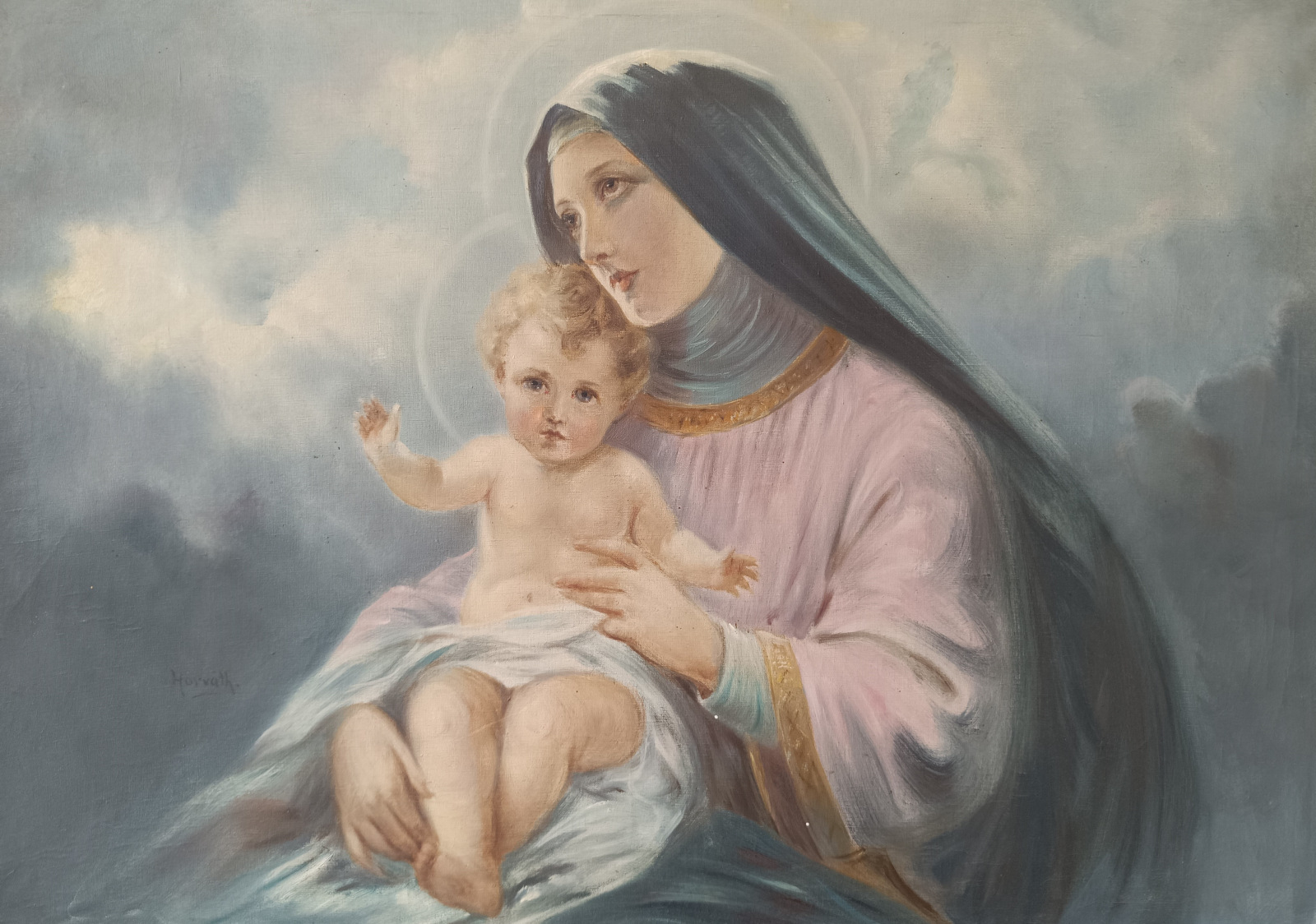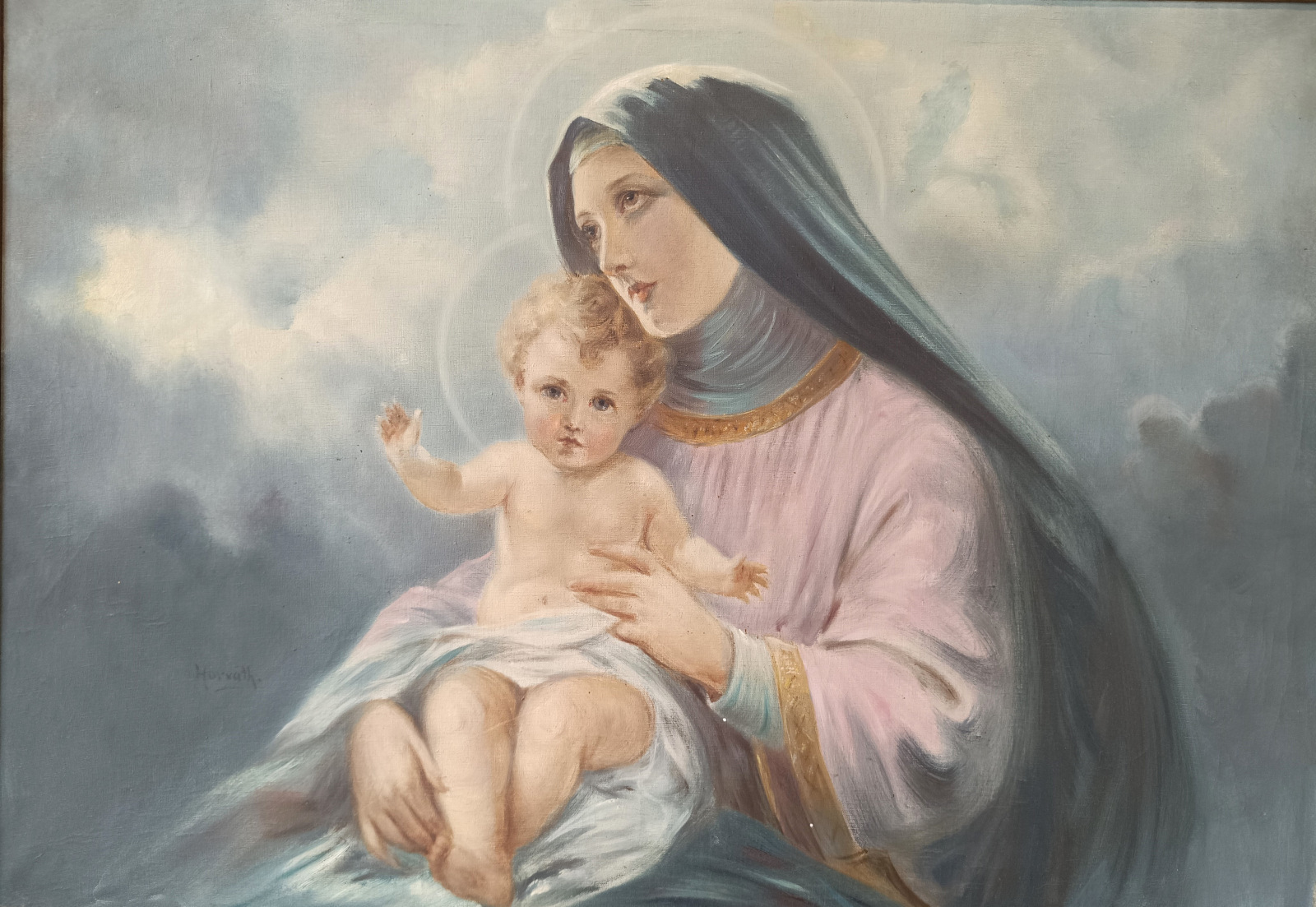 Velký obraz Horváth Budapesť Panna Mária. Medzo rokmi 1920-1940